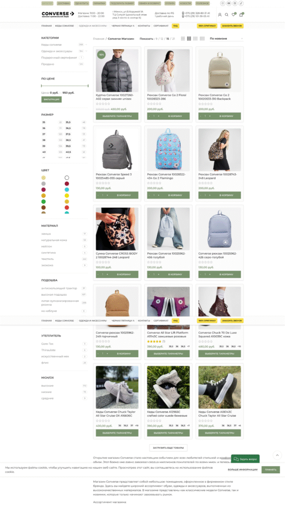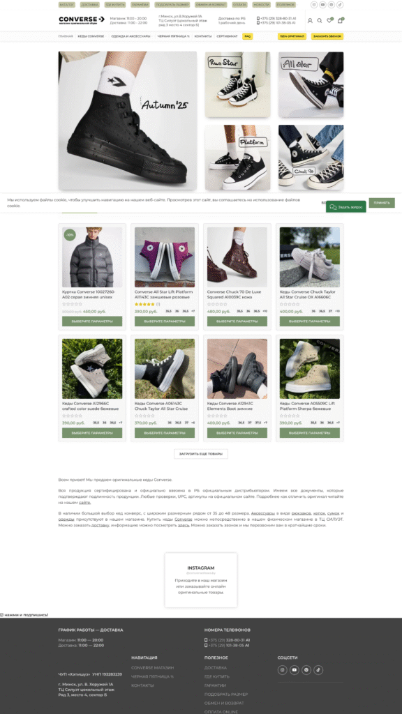 Converseshoes.by — белорусский интернет-магазин специализированной обуви Converse с физическим магазинов в Минске