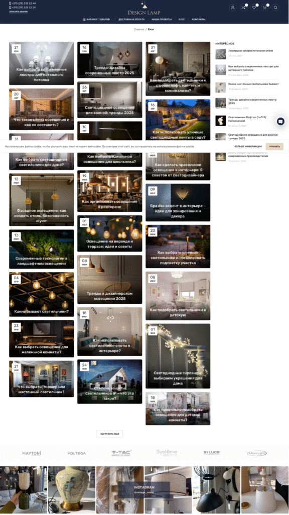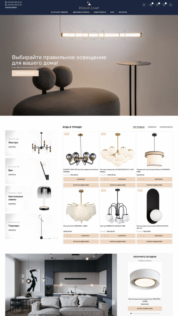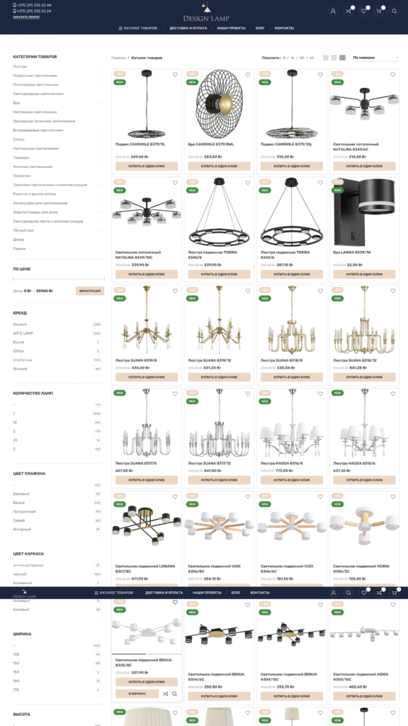 Каталог и навигация: структурирование ассортимента по категориям, брендам, стилям и типам освещения; внедрение фильтров для быстрого выбора.