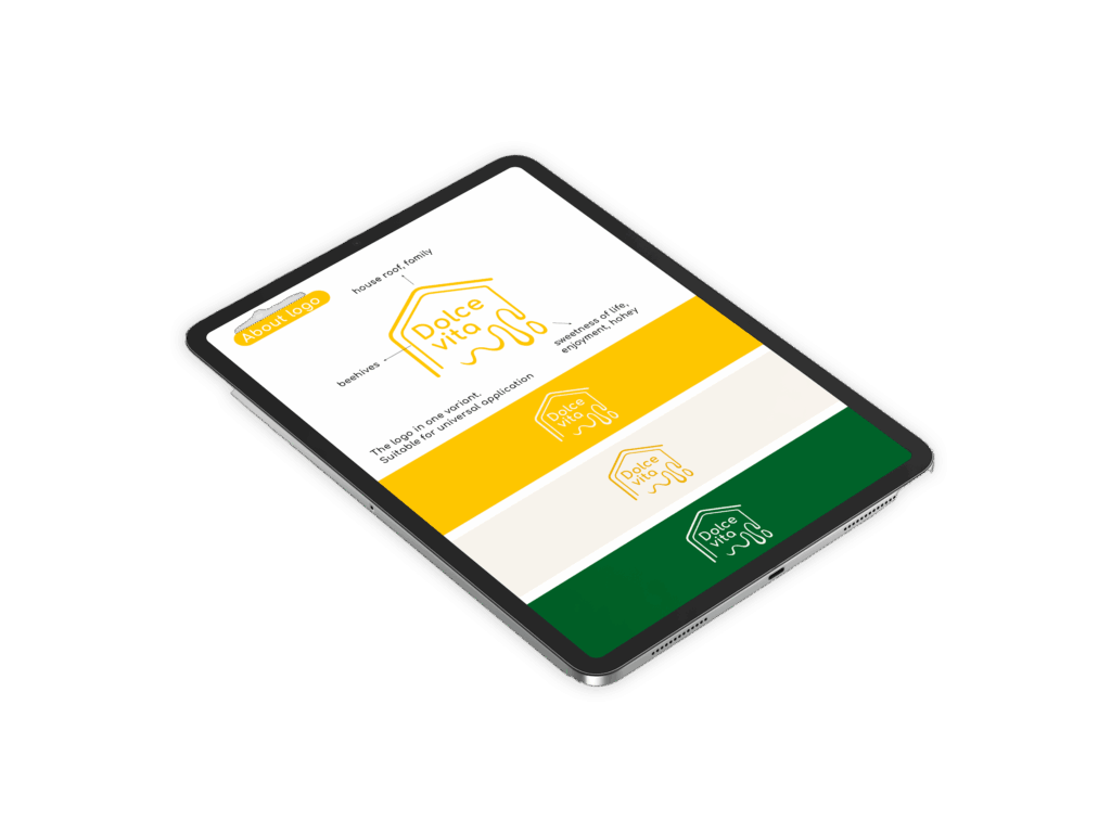 Логотип представляет из себя название в рамке в форме пчелиной соты. Верхняя часть рамки дает отсылку к крыше дома, подчеркивая главное качество продукта (домашний). Нижняя часть в форме стекающего меда, которая несет в себе смысл сладости, удовольствия и прямую отсылку к продукту. Шрифт названия имеет ровные линии, сглаженные углы, что дарит ощущение безопасности и простоты.